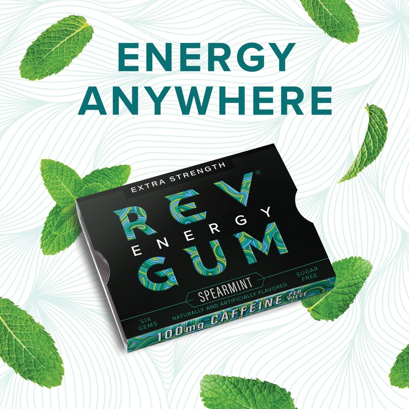 Rev Gum Caffeine Energy Gum | Extra Strength 100mg of Caffeine per Gem | Spearmint Sugar Free Caffeine Gum - Low Calorie Chews to Help You Stay Alert, Awake and Focused - Mint Chewing Gum - 12 Packs (72 Count)