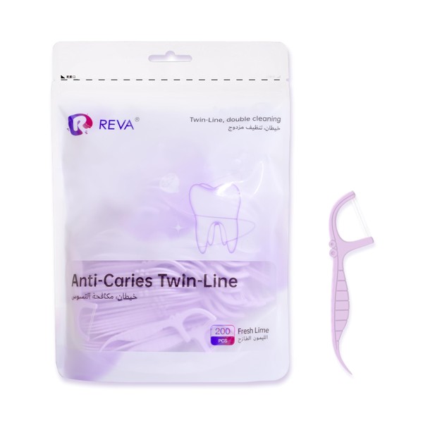 Reva Anti-Caries Twin-Line dental floss picks are an innovative oral hygiene solution designed to combat tooth decay and cavities. These twin-line flossers feature a high-tensile strength polyethylene fibre that gently cleans between teeth and along the gum line, removing plaque and food debris. The slim design allows easy access to tight spaces, while the sturdy construction prevents shredding. The fresh lime flavour encourages regular flossing, promoting a clean and healthy mouth. With their simple yet effective design, these Twin-Line floss picks are a convenient way to maintain optimal dental hygiene on-the-go or at home. Prioritise your oral health with Reva's Anti-Caries Twin-Line flossers.