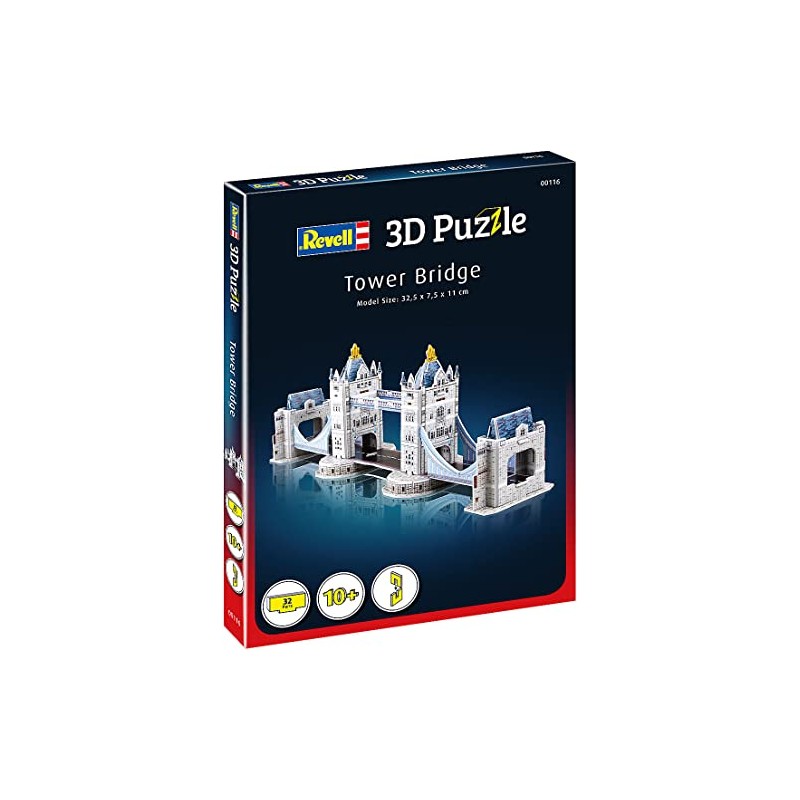 Revell 00116 Tower Bridge from London, one of the most famous buildings in England, width 32.5 cm, discover the world in 3D, craft fun for young and old, coloured