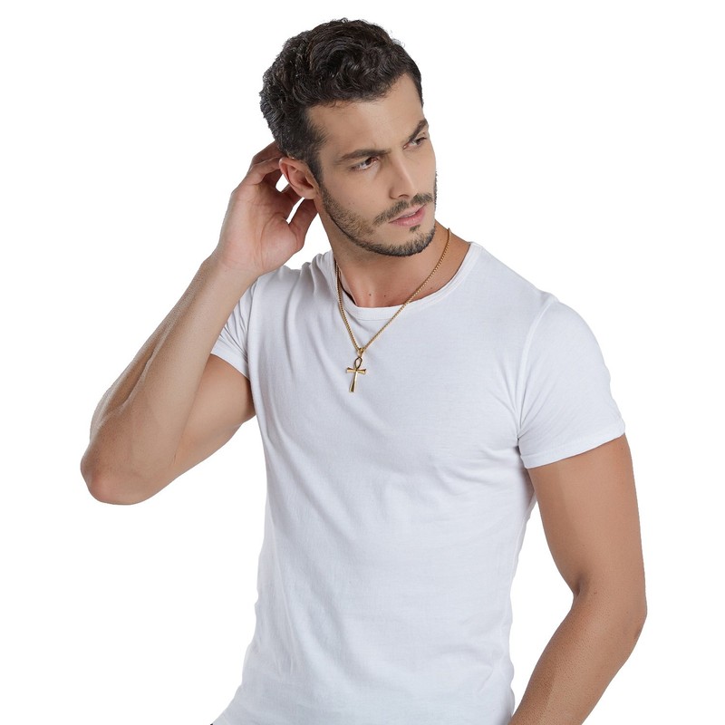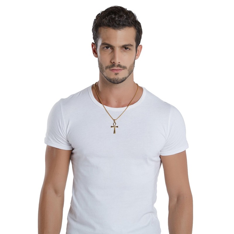 - [Product Details] Gold Egyptian Ankh necklace for men. Represents the concept of life. The plain Ankh pendant is highly polished and very shiny. More shiny metallic appearance, resisted to rust, corrosion and tarnishing. The rolo cable chain is sturdy and smooth so it will not be easily broken and scratch your skin, and the carefully-chosen lobster clasp is very flexible.