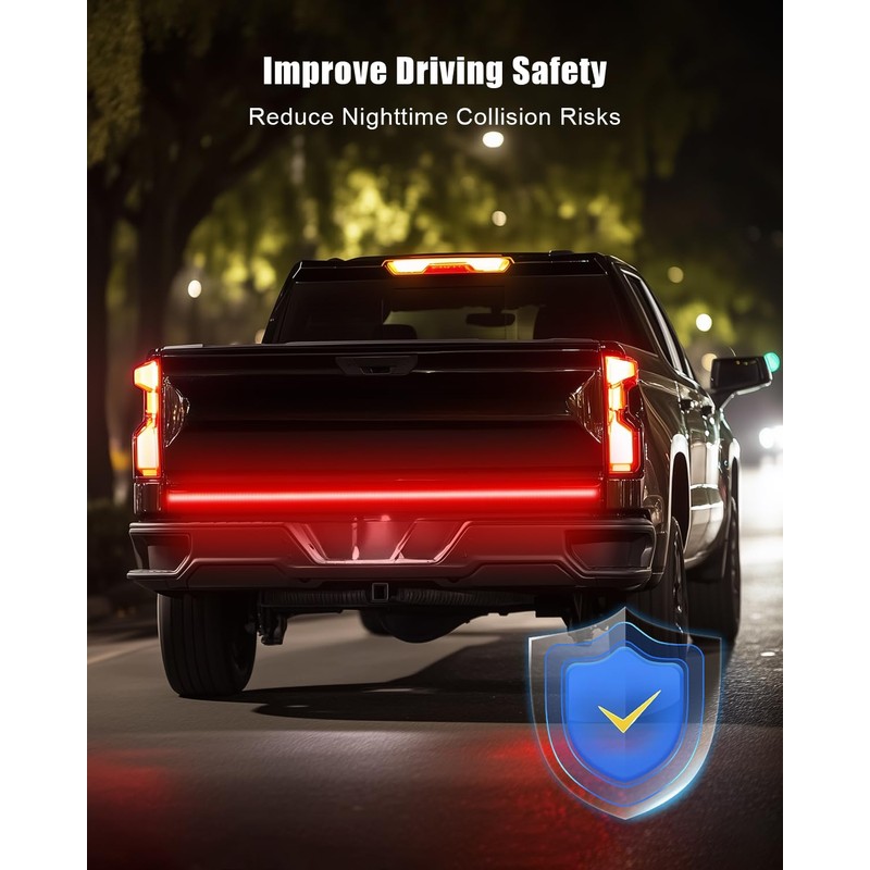 - Improve Driving Safety: Tailgate light bar is designed to reduce blind spots and trailer false detection, ensuring that the vehicle's turn signal lights, brake lights and reverse lights work properly when using the red line tailgate light, without interfering with the electrical system, and when using the LED blade The tailgate light bar retains the truck's 7-way blade connector's free towing capability without affecting other functions