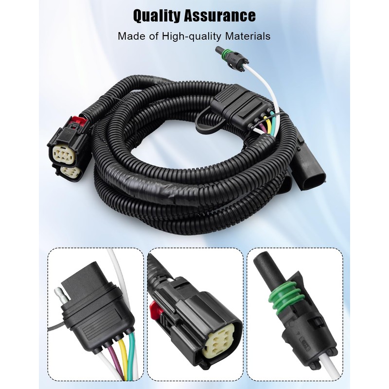 - High-Quality Copper Material: Tailgate light bar adapter uses 100% pure copper 16AWG wire and waterproof 4-pin connector, equipped with dust cover, providing stable power transmission and durable connection, black split harness tube has excellent wear resistance and corrosion resistance Performance, ensuring long-term use without aging, and stable operation even in bad weather