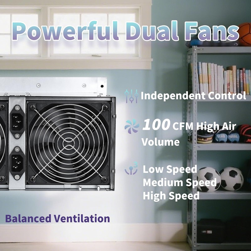 - ADJUSTABLE FAN SPEEDS: Each fan supports three speeds: low, medium, and high. Fans can be set independently to meet various needs, whether for light airflow or strong ventilation. Flexible speeds save energy and improve efficiency