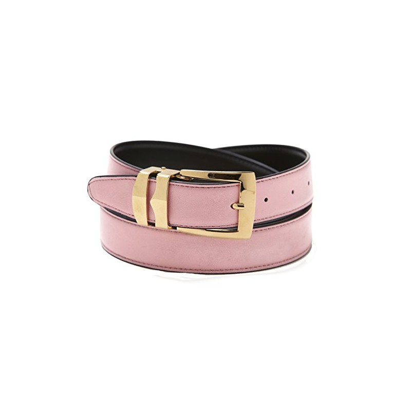 Reversible Belt Bonded Leather with Removable Gold-Tone Buckle PINK/Black 42