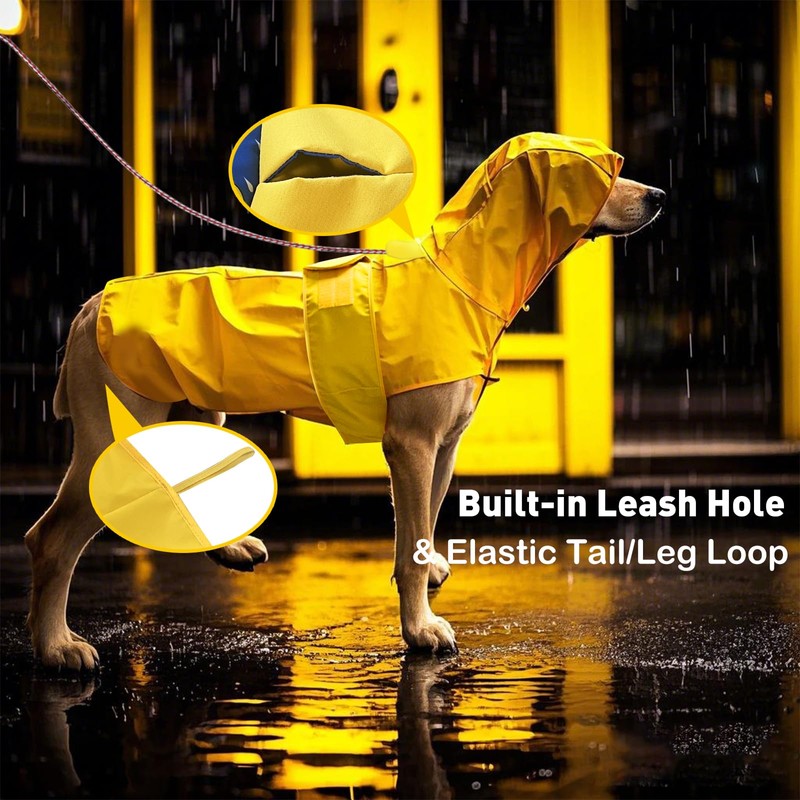 - Reflective Strips and Adjustable Belly Band: The dog raincoat features bright yellow and sewn reflective stripes, and high-visibility reflective materials help keep your pet safe when you go out for a walk on cloudy days, at night, or in poor visibility conditions. It also comes with an adjustable belly band to help you find the correct and comfortable size for your dog. Built-in leash hole allows you to attach the leash to the collar under the dog raincoat.