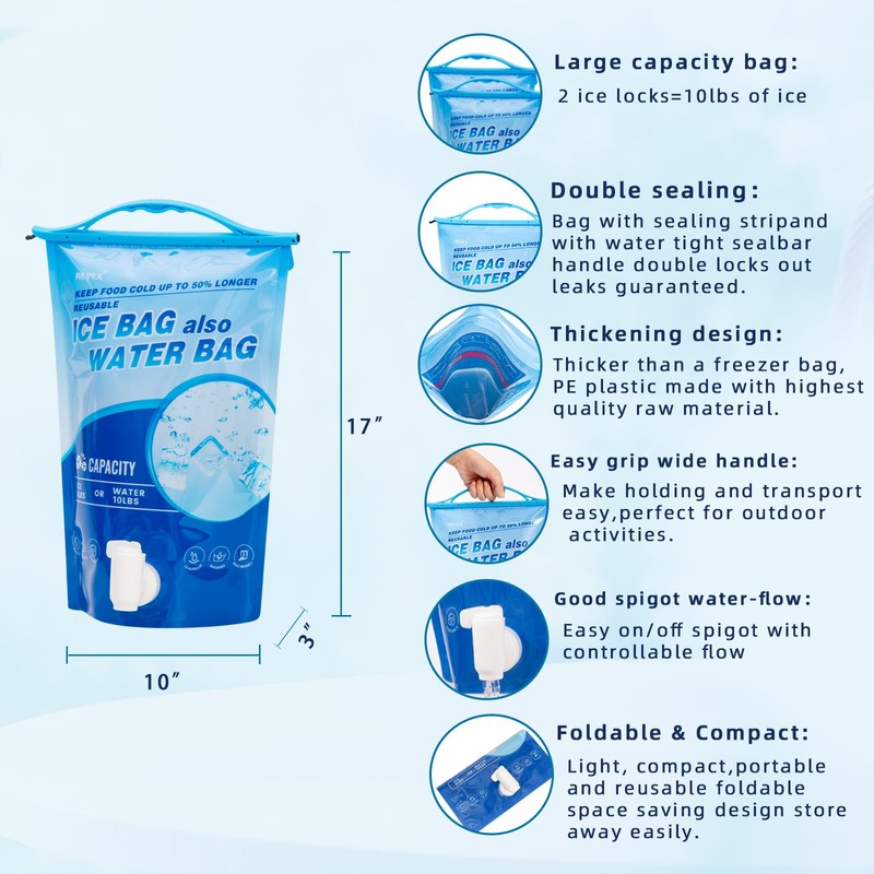 - Multi Occasion Use: Our cooler packs can hold 10 pounds of ice water. On hot days, The freezer packs are perfect for lunch box,camping, fishermen, beach play, picnics. After use, fold the lunchbox ice packs reusable and put it in your backpack for the next use.
