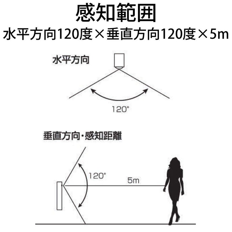 - Motion Sensor Range: 120° x up to 16.4 ft (5 m) Sensitivity is better in crossing directions and less sensitive in approaching directions