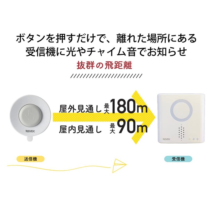 Revex XPN Series XPN710A Wireless Chime Transmitter/Receiver Set, Waterproof, Embossed Button, For Additional Use, Light/Sound Call Chime, For Restaurants, Hospitals, Nursing