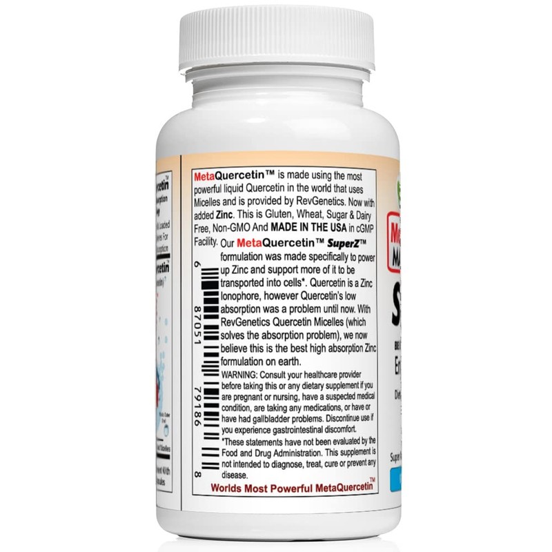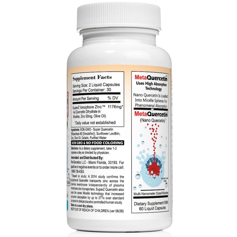 - HIGHEST IONOPHORE TECHNOLOGY: The MetaQuercetin SuperZ Capsules Uses The The Most Powerful Liquid Micelle Technology In The World To Increase It's Absorption And Bioavailability. This Product Is Specifically Made For High Absorption Of Quercetin + Zinc (as a Zinc Ionophore).