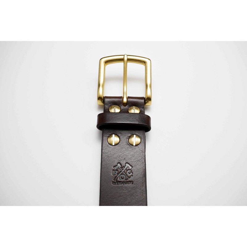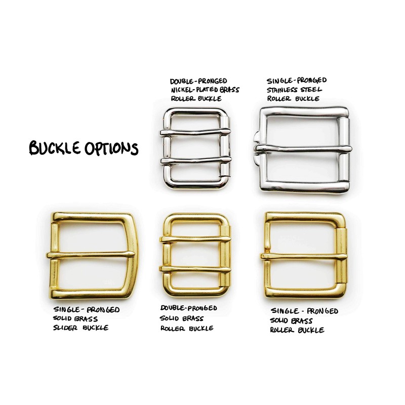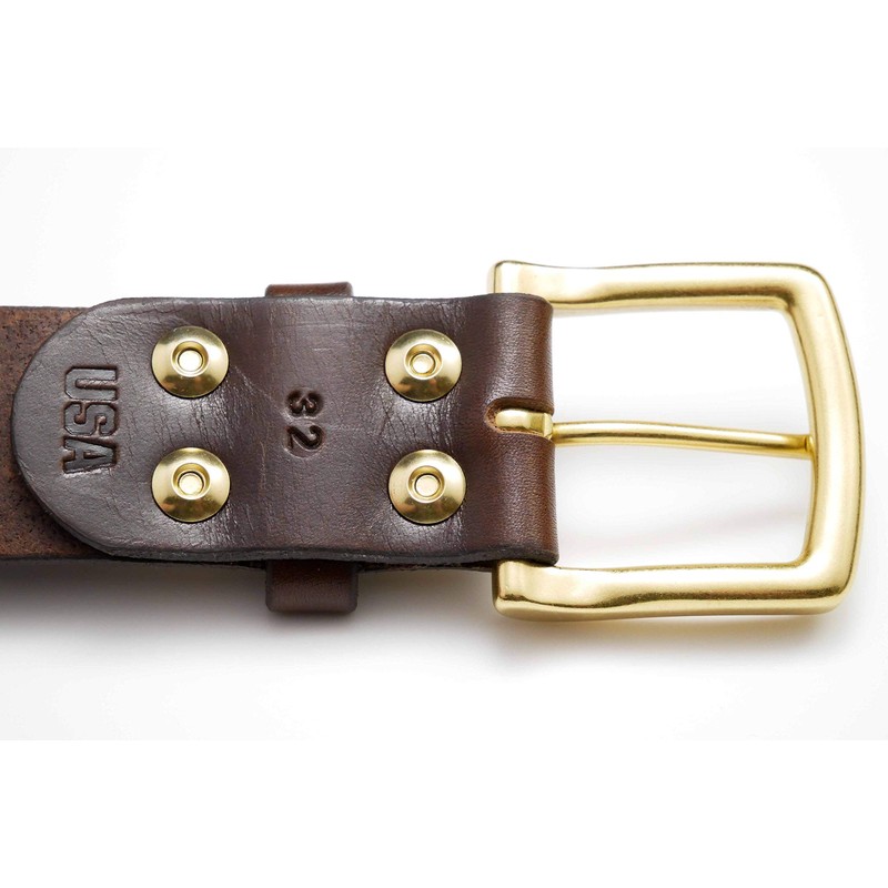 - Handmade in Spokane, WA, USA, 1.5″ Width, Solid Brass, Stainless Steel or Nickel-Plated Brass Buckle Options, Thick Chestnut, Brown, or Black Veg-Tanned Full Grain Leather, 4 Chicago Screws (Matching to Buckle), Rounded point, Hand Burnished and Painted Edges, 100% Full Grain Leather