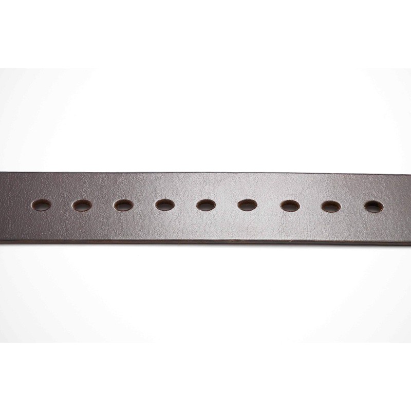 - This thick full grain leather belt is built to last a lifetime. Each belt strap is cut directly from prepared cowhides. The edges are then hand burnished and painted giving the belt a clean finished edge. The holes in the single prong belts are oblong to prevent the leather from stretching. Four Chicago screws are set to hold our solid brass or stainless steel roller or slider buckle and matching leather keeper in place.