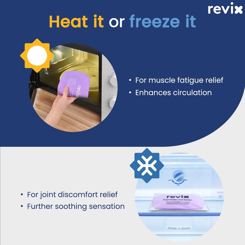- Dual-Pack Convenience, Always Ready:REVIX heating and cooling pads feature advanced gel that freezes at -13°F, staying soft and flexible even when frozen. The dual-pack system ensures soft ice packs always have one ready while the other chills—instant relief, anytime