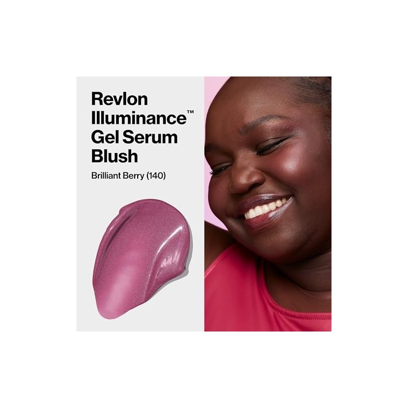Revlon Illuminance Gel Serum Blush, Visibly Plump Cheeks, Dewy Finish and Hydrates All Day, 140 Brilliant Berry, 0.37 fl oz.