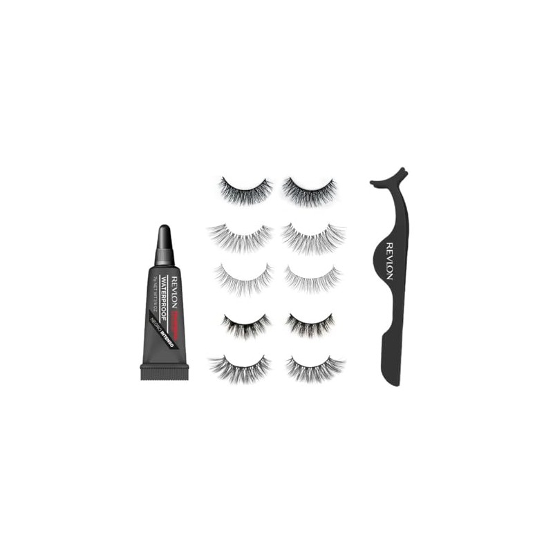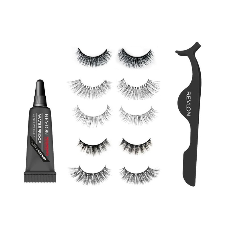 Revlon - Pestañas Postizas Reutilizables, 5 Pares Multidimensionales con Aplicador y Pegamento Negro a Prueba de Agua