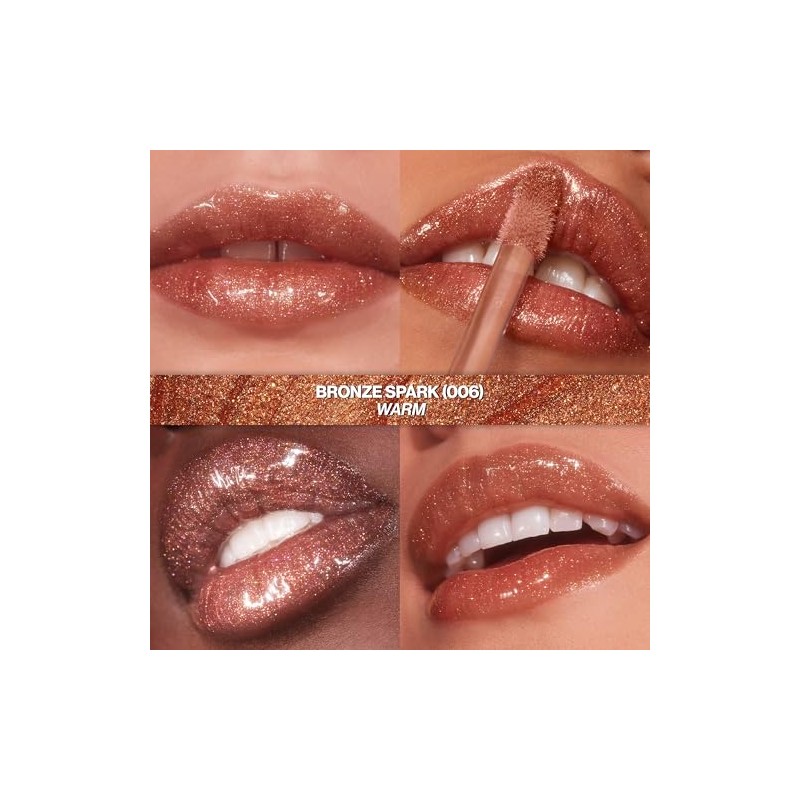REVLON REVLON Super Lustrous Glimmer Gloss, Non-Sticky Lip Gloss, High-Shine Finish, Plant-Based Glitter, 006 Bronze Spark, 0.13 fl oz