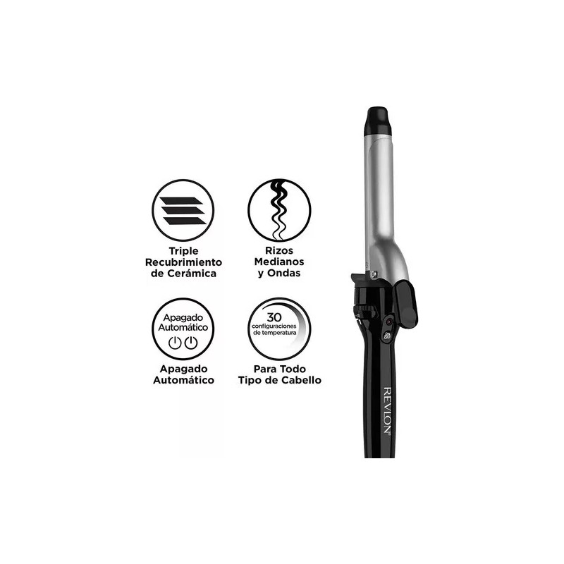 TENAZA RIZADORA DE CABELLO REVLON RV051BLKLA1 CERAMICA 1PUL NEGRO