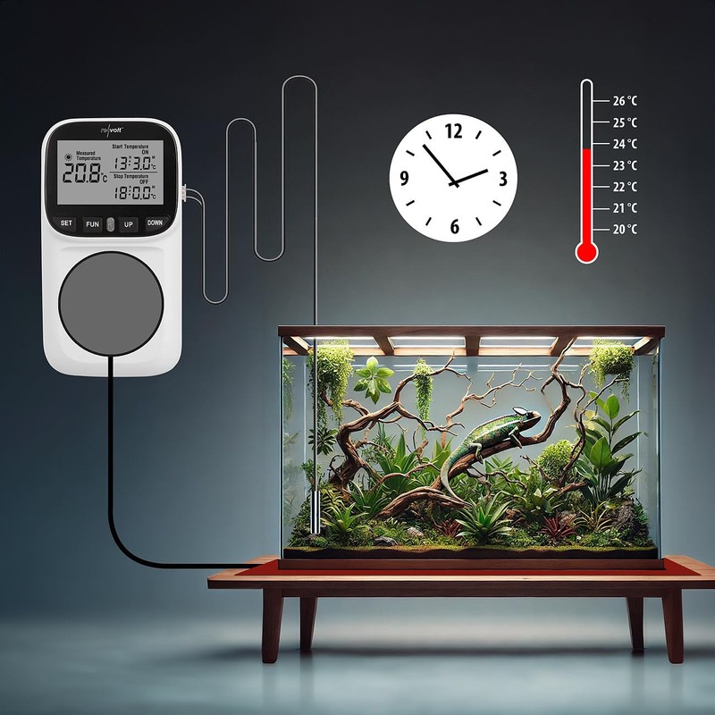 - Temperature-dependent control of heating and cooling devices. External sensor cable for reliable room temperature measurement. Large LCD display for easy reading and control. Large temperature range: from -40 °C to 120 °C. Precise temperature display: accurate to 0.1 °C. Switching capacity up to 3,680 watts / 16 A
