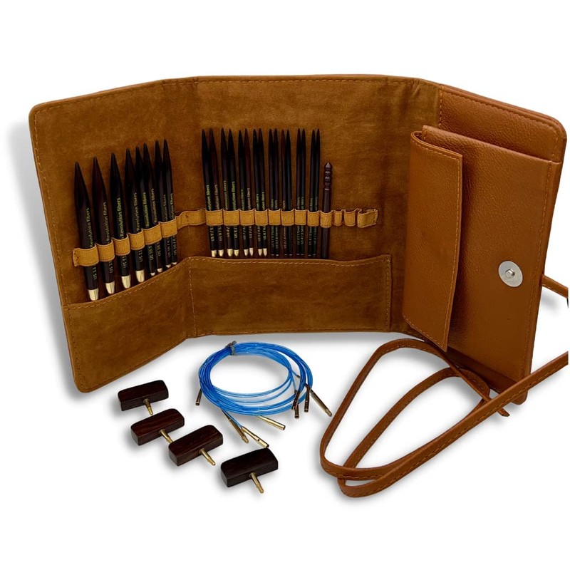 Revolution Fibers Rosewood Interchangeable 5 inch Circular Knitting Needle Set with Leather Case (29 Piece Set) | Beautiful Case, Perfect for Portable Knitting/Yarn Projects and Easy Storage