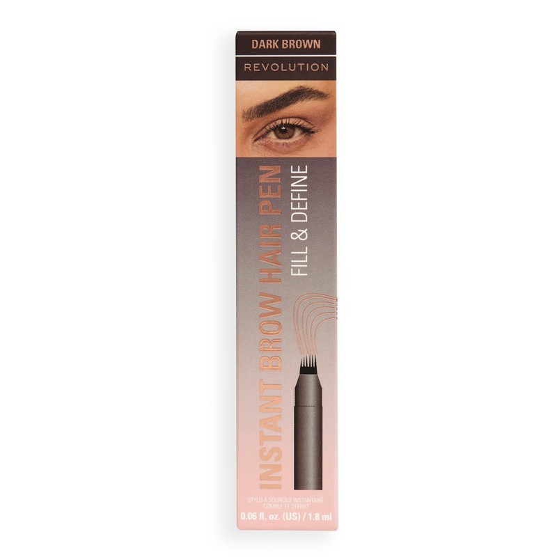 Revolution, Instant Brow Hair Pen, Precision Applicator for Hair-Like Strokes, Long-Lasting Eyebrow Pen, Dark Brown, Vegan & Cruelty-Free, 1.8ml