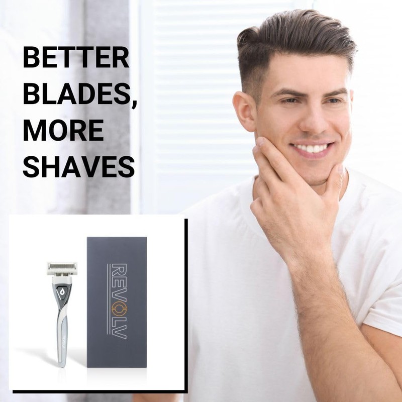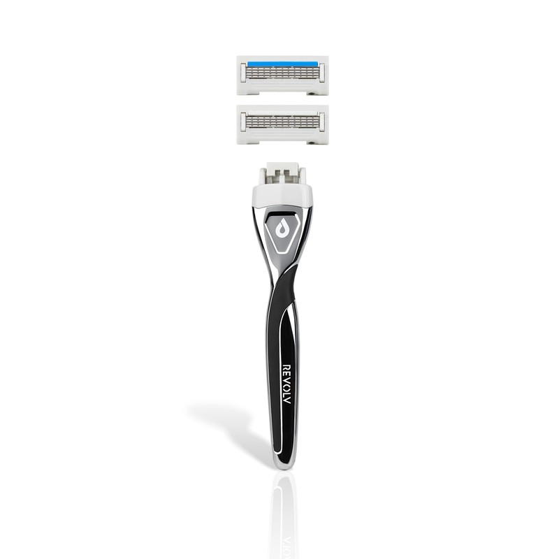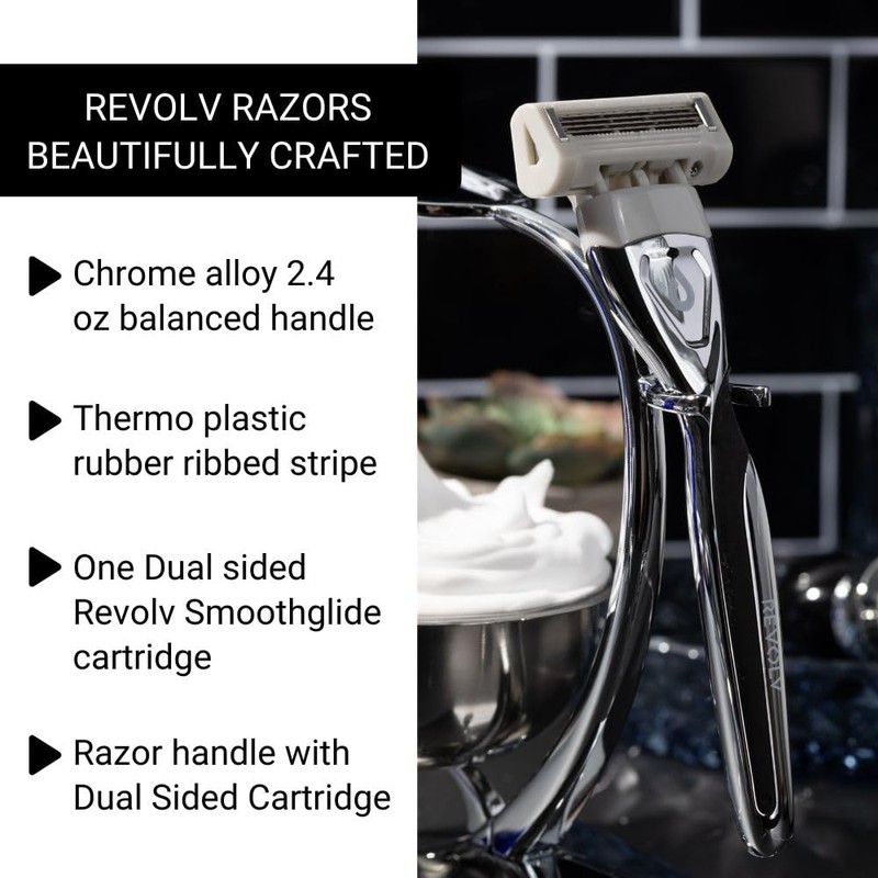 REVOLV - Men’s Razor - 1 Premium Weighted Handle + 1 Dual-Sided Cartridge - For a Closer, Smoother Shave - Safe on Sensitive Skin - White