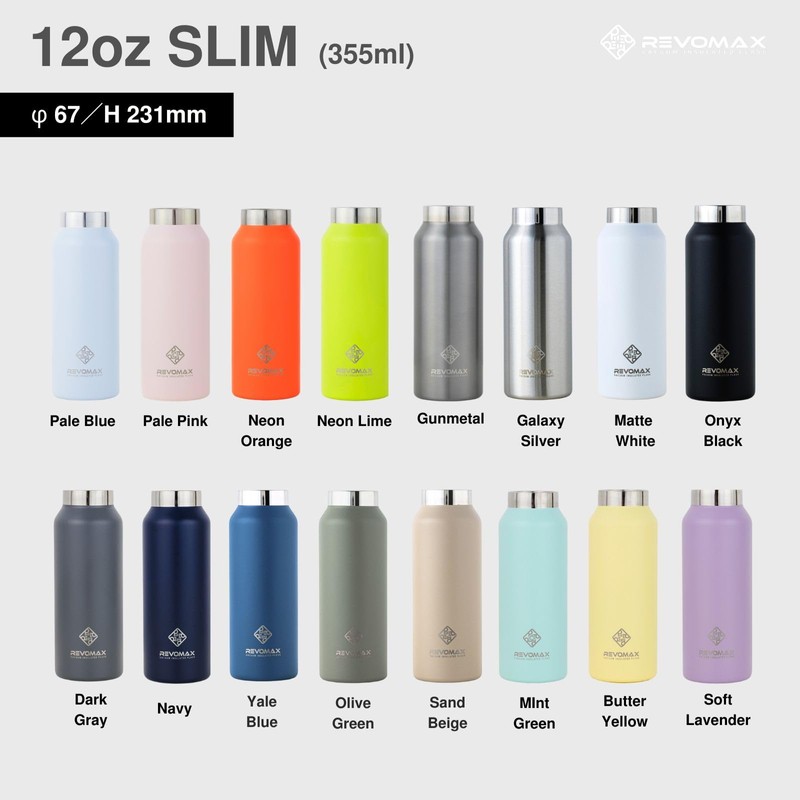 REVOMAX Carbonated Vacuum Insulated Bottle, No Cap, 12 oz, 12 fl oz (355 ml), Keeps 18 Hours Hot and Cold for 36 Hours (Olive Green, Slim)