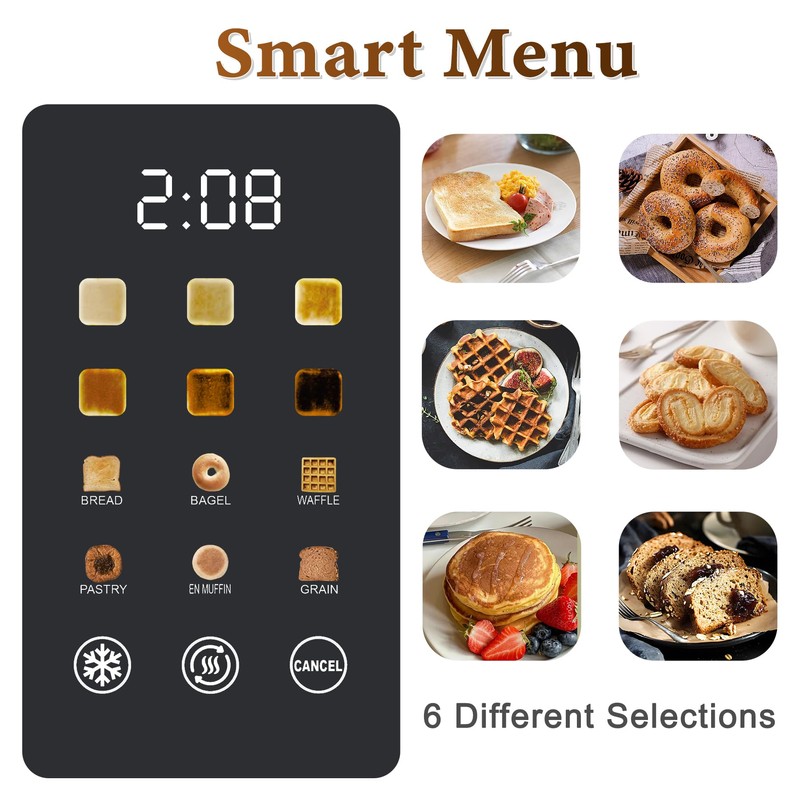 - Easy-to-Use Controls with LED Display - Enjoy user-friendly operation with clearly labeled buttons and a bright LED countdown timer. Easily activate Defrost, Reheat, or Cancel functions and watch your toast progress in real time.