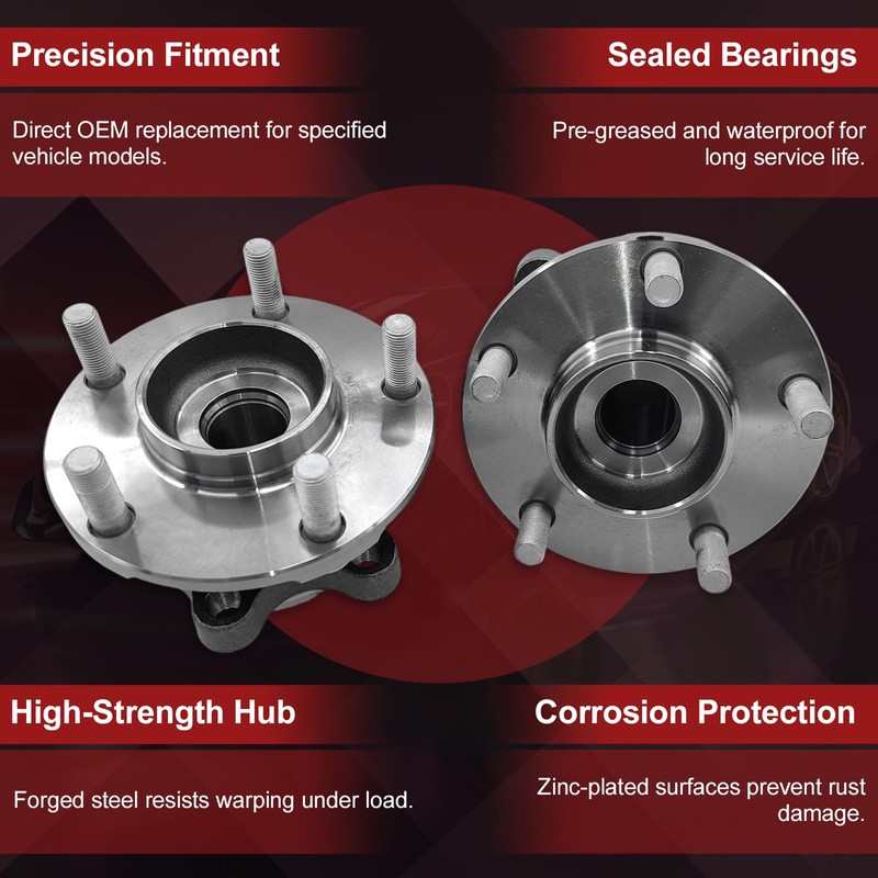 - Enhanced Durability: Our front bearings and hub assembly constructed with high-grade bearing steel, precision seals, and corrosion-resistant coatings for smooth, quiet operation and extended service life.