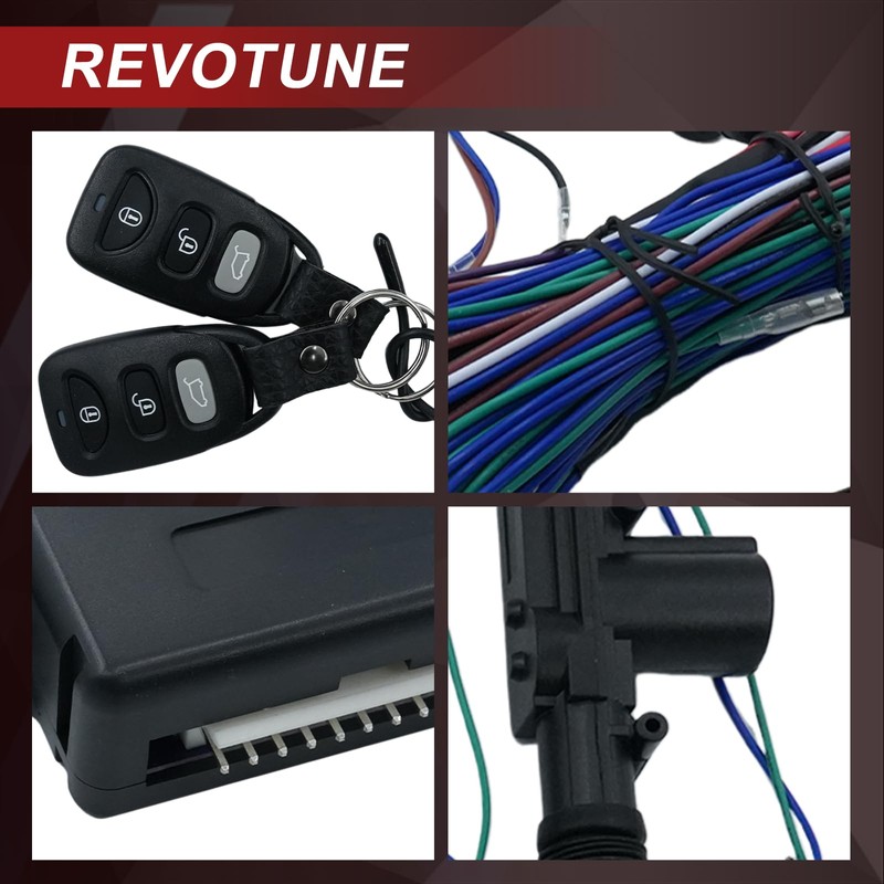 REVOTUNE Universal 4PCS Car Power Door Lock Actuator Kit with 2 Remote Controls 12V Keyless Entry System for Central Locking Conversion - Black