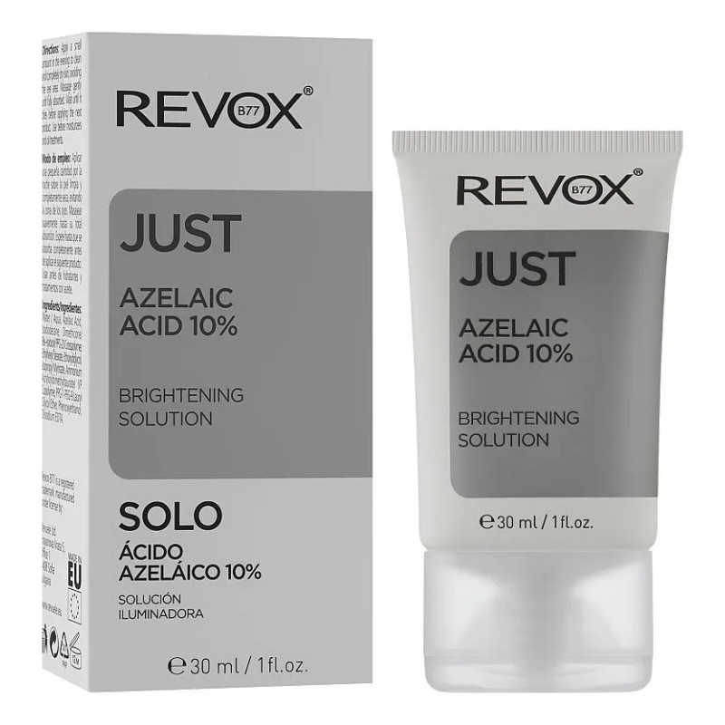 ¡Descubre el poder del Revox B77 Just Azelaic Acid 10% Serum Facial Solución Iluminadora! ✨ Este sérum es tu aliado perfecto para una piel más clara, uniforme y radiante. Diseñado para combatir una variedad de preocupaciones cutáneas, este potente tratamiento te ayudará a lograr la tez que siempre has deseado.