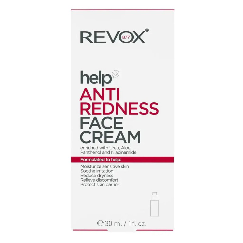 Revox Help Anti Redness Face Cream is the soothing solution for sensitive skin suffering from redness, dryness and irritation. This fragrance-free, clean formula is packed with soothing and hydrating ingredients including chamomile extract, squalane, panthenol and niacinamide, specially selected to strengthen the skin barrier and reduce discomfort.