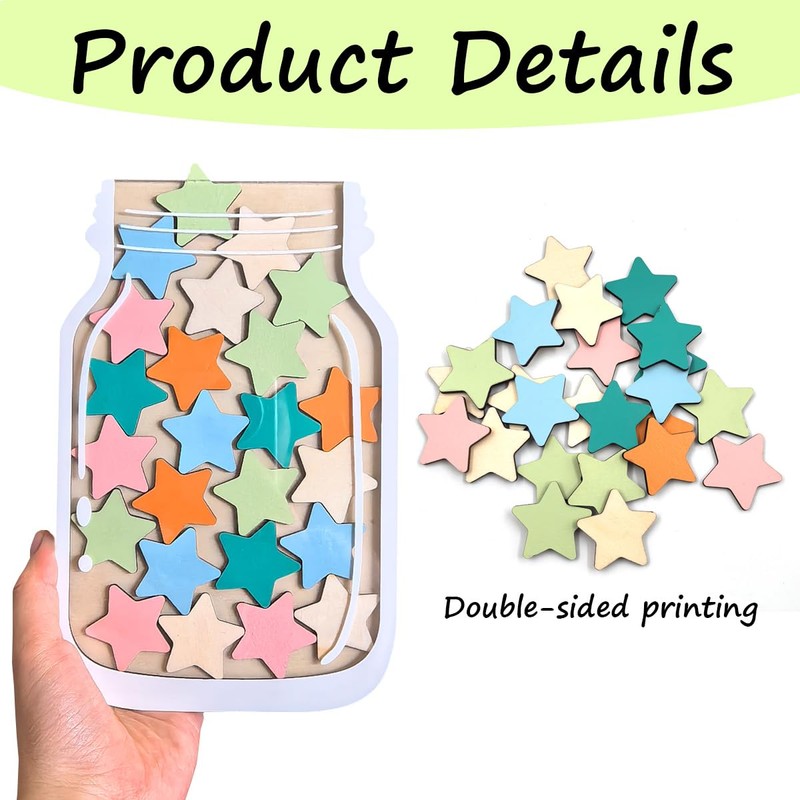 - WOODEN MATERIAL: This star Reward Jar is made of high quality wood, sturdy and durable. Its unique design and bright colours can attract children's attention.