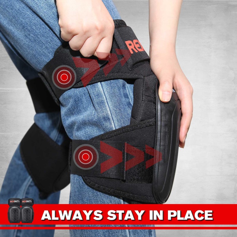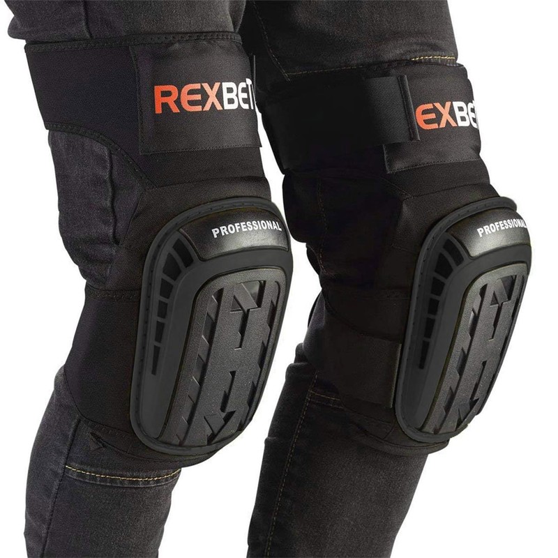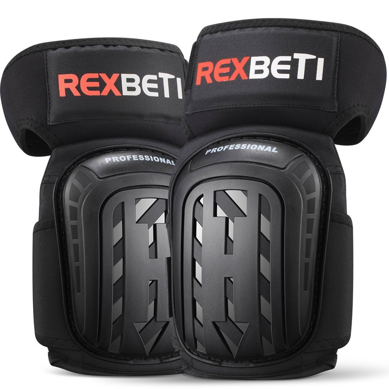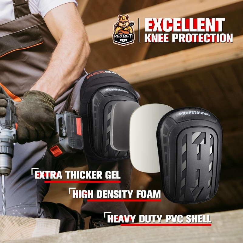 REXBETI Knee Pads for Work, Construction Knee Pads for Men, Heavy Duty Comfortable Anti-slip Foam Gel Knee Pads for Gardening Flooring and Cleaning, Strong Stretchable Straps, Black