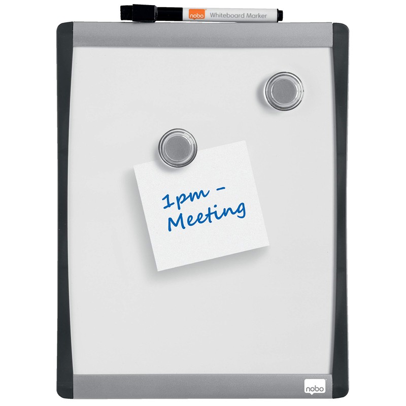 - The dry erase magnetic mini whiteboard with arched frame in silver and black is ideal for attaching notes, photos, recipes, appointments or children's drawings