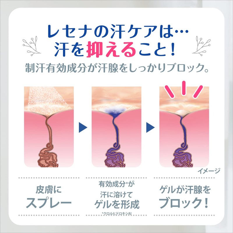 - Point 1: Recena thoroughly blocks sweat. Because the smell is left behind sweat. Recena reduces sweat, so it does not smell