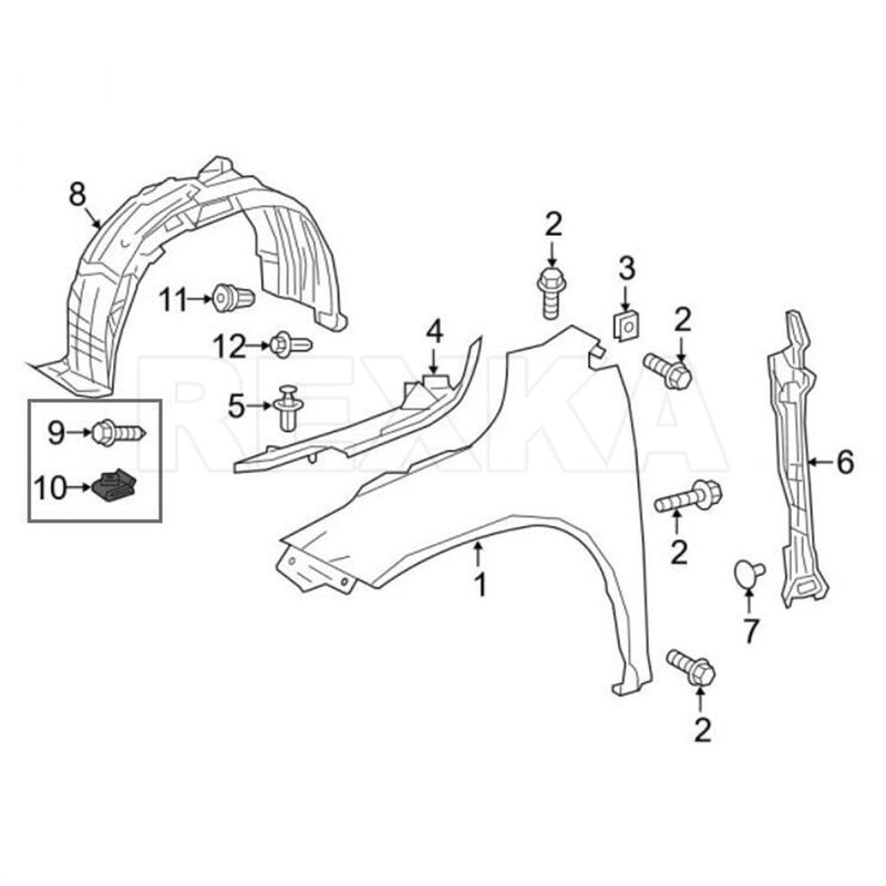 Rexka 10 Sets Fender Liner Bumper Cover Screw U Nut Kit for Toyota Lexus 90179-05060 90159-60477