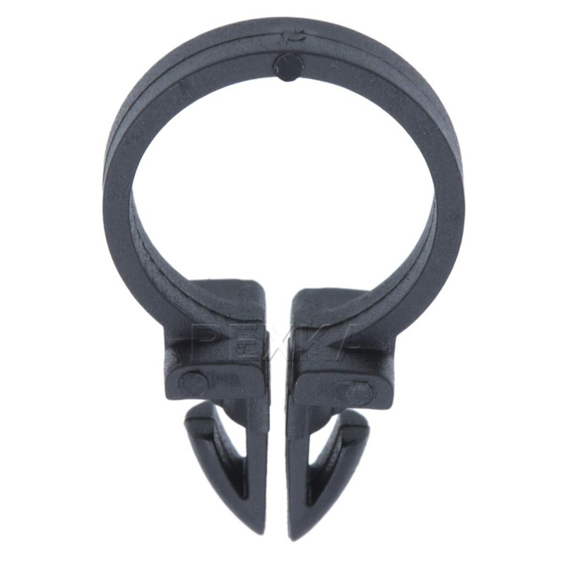 A quick, economical method of fastening wires, tubes, hoses or rods to metal, plastic or any other surface ranging from 1/32" to 1/8" thickness. Clips are molded of durable black nylon plastic. They snap into 1/4" diameter holes and are held firmly in place by flexible "snubber tips" which compensate for variation in wall thickness. Tube/Hose/Wire Outside Diameter: 5/8" Clip Overall Height: 1-3/16" Clip Height Above Panel: 3/4" 30 Per Package