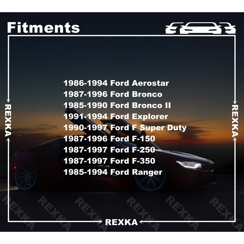 - 🚗 Fits Ford 1987-2003 Ford F-150, -Also Fits 2004 Heritage Models, 1987-1999 Ford F-250, 1987-1997 Ford F-350, 1985-1994 Ford Ranger, 1987-1996 Ford Bronco, 1988-1997 Ford F Super Duty,