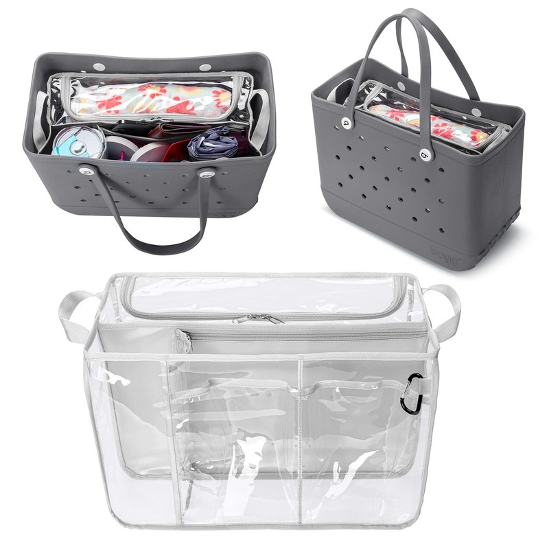 Rexmica Clear Beach Bag Organizer Insert Compatible with BOGG BAG Original X Large, Zipper Organizer Liner Compatible with BOGG BAG Original X Large, Insert Divider Pouch with 2 Compartments, Gray