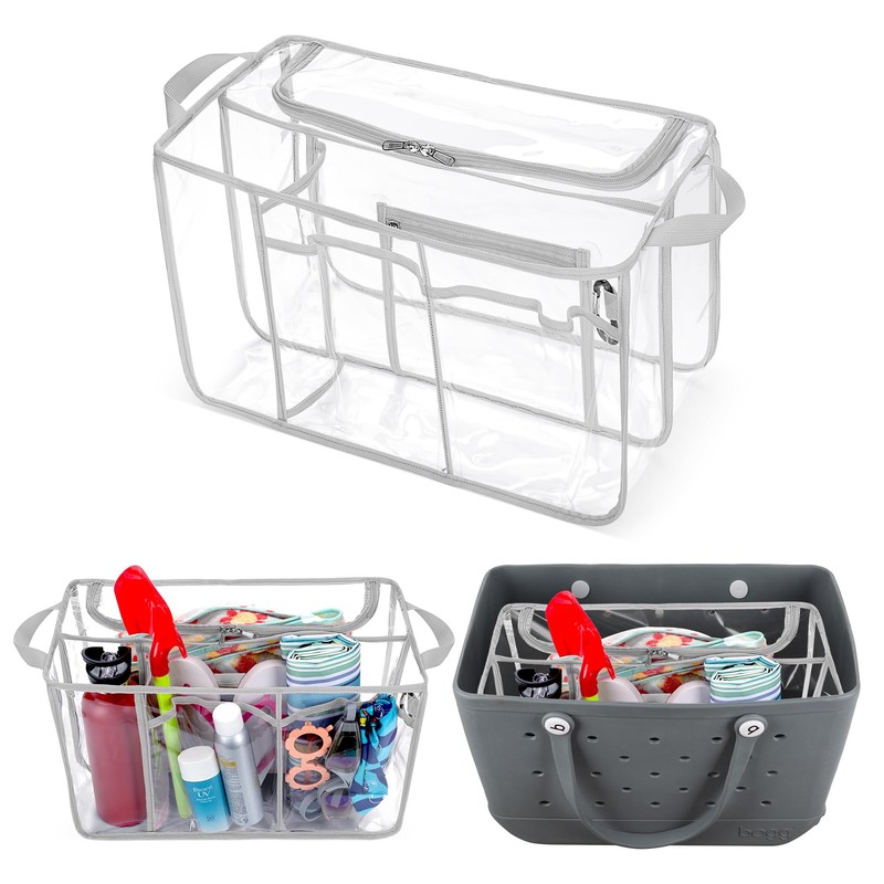 Rexmica Clear Beach Bag Organizer Insert Compatible with Bogg Bag X Large, Waterproof Beach Bag Insert Divider Pouch, Beach Tote Bag Insert Organizer Liner 15.6 x 8.4 x 10.8 Inches, Gray