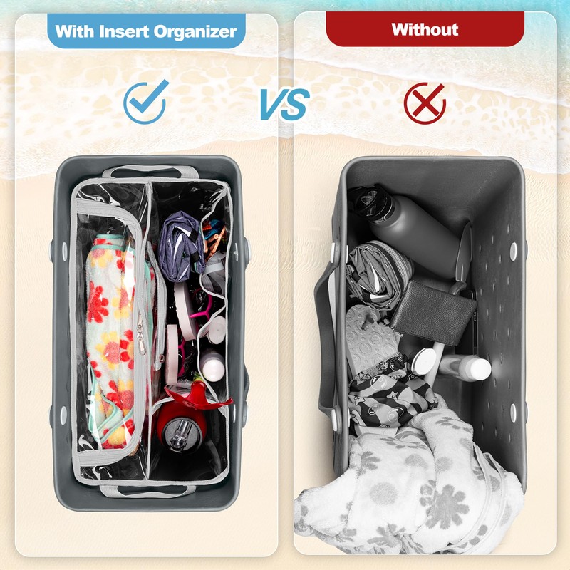 - KEEP ORGANIZED - This waterproof insert inner bags is a great companion to your waterproof beach tote bag. Multiple compartments and pockets help keep your beach essentials organized so you can find what you want at a glance.
