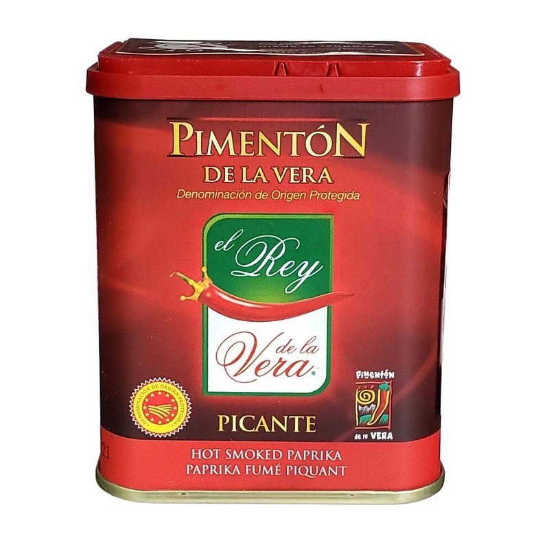 Rey de la Vera represents four generations of paprika producers. Smoked pimenton, or paprika, is a staple of the Mediterranean diet and is used to give both color and flavor to many traditional dishes. Rey de la Veraâ€s unique drying process over an oak wood burning stove gives the paprika the aroma, flavor and distinctive color the La Vera Pimenton is known for. The sweet pimenton is made from the small round ñora peppers, while the hot pimenton is produced from a mixture of guindilla peppers for their heat, and the jarandilla pepper (a long pepper with intense red color indigenous to the Vera region) to soften the bite.