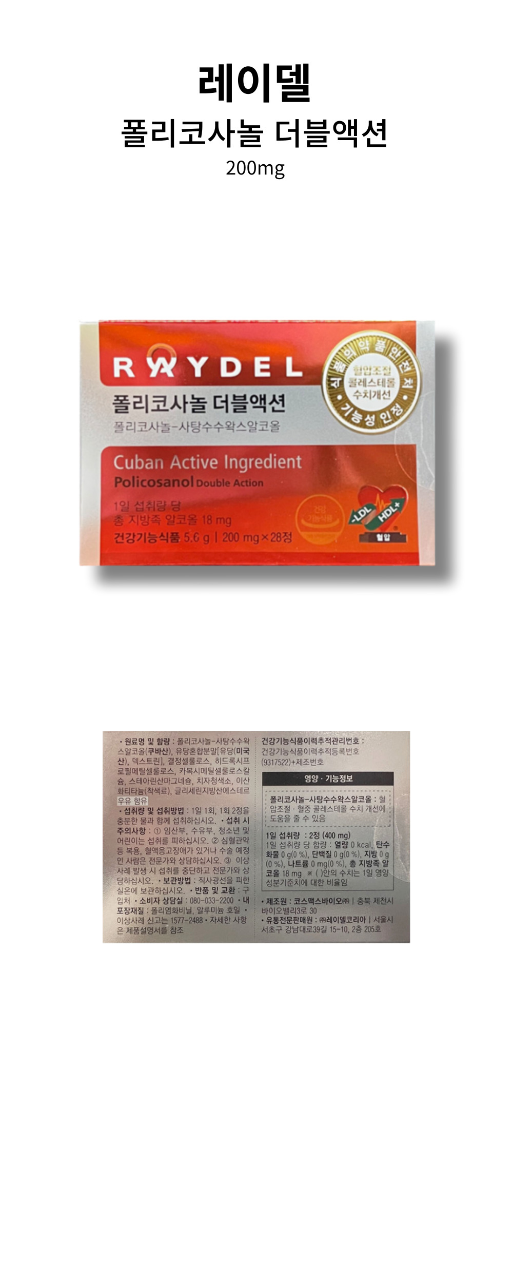 Reydel Policosanol Double Action 200mg 2 boxes / 레이델 폴리코사놀 더블액션200mg 2박스