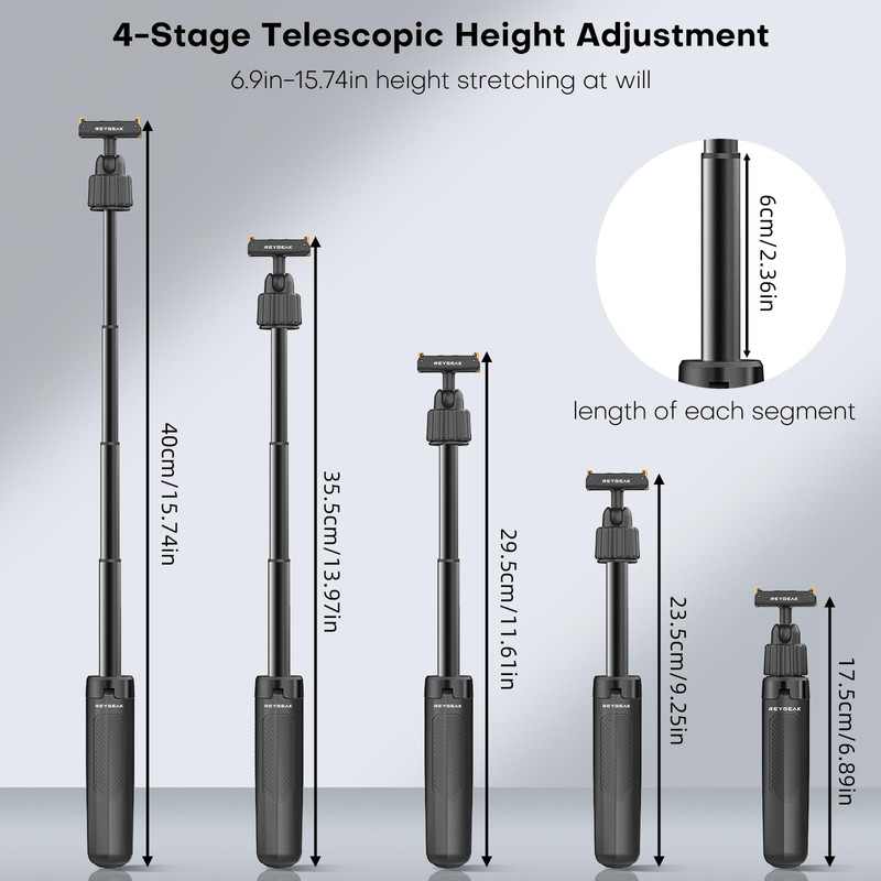 - Ready for any shooting scenario with built-in tripod at the bottom. The ball joint design at the top allows for quick and convenient adjustment.
