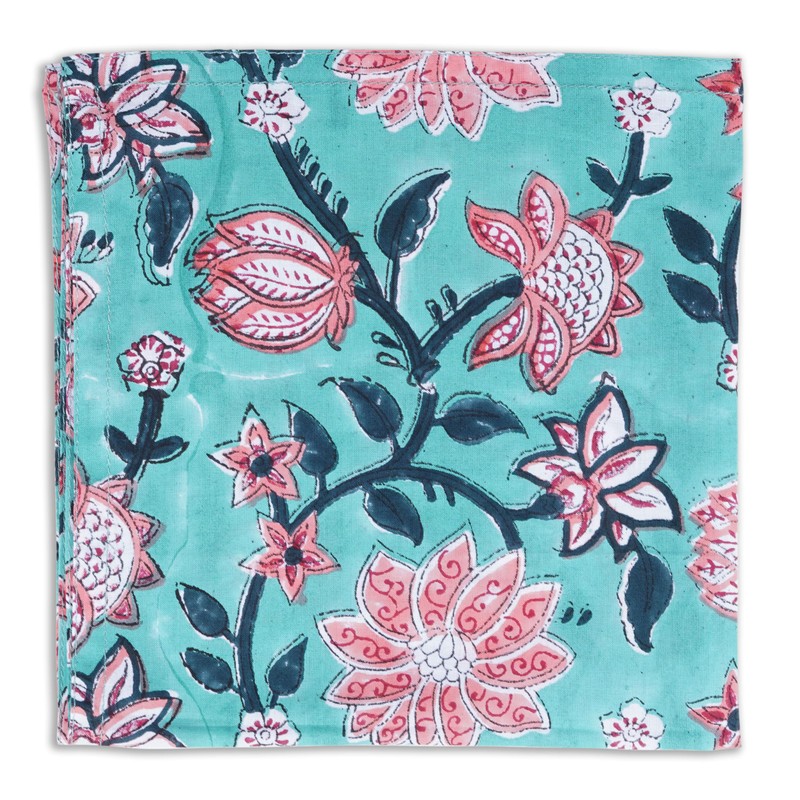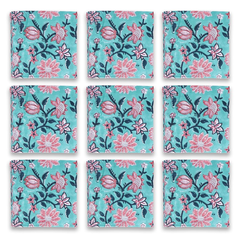 REYNOSOHOMEDECOR Cotton Cloth Napkins Set of 10 Hand Block Printed Size 16 x 16 Kitchen Dining Room Table (Dark Green)