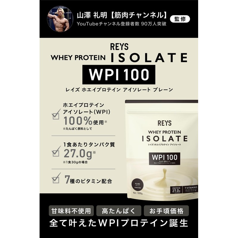 REYS レイズ WPI ホエイ プロテイン アイソレート 山澤 礼明 監修 1kg 国内製造 ビタミン7種配合 (プレーン)
