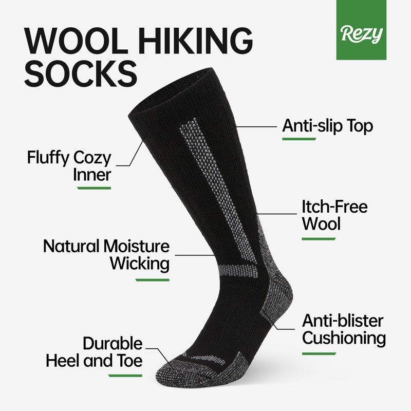 Rezy Warm Merino Wool Socks Mens & Womens - Durable, Thick, and Comfy Merino Thermal Socks