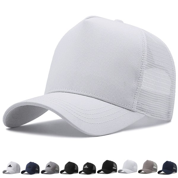 RF Men's Cap, Large Size, Hat, Mesh, Deep, 23.6 - 25.6 inches (60 - 65 cm), New Style, Unisex, Stylish, Cool, Long Brim, Popular, whiteplain