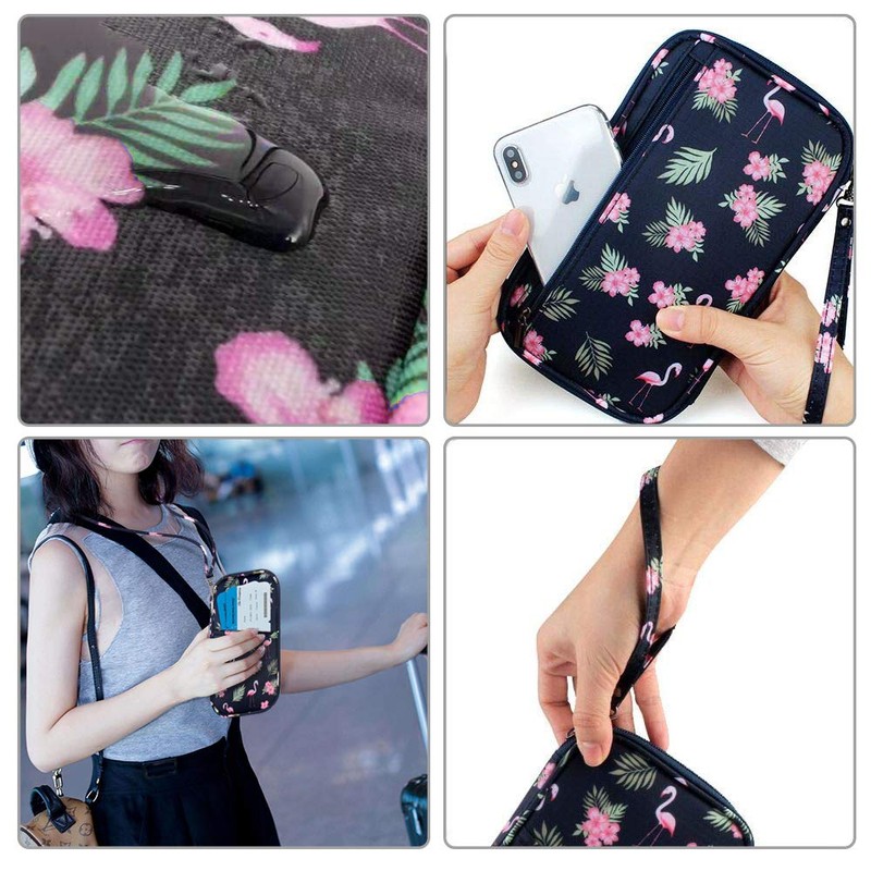 family Travel Wallet Passport Holder RFID Lock and Organizer for 5 Passports, Credit Cards, Airline Tickets, Money. High Quality Material Our passport covers are made of super durable and durable fabric, are lightweight and waterproof, the perfect combination for travel. Very attractive design can be a great gift for men, women, friends and families. RFID protection: passport sleeves with RFID lock prevent thieves from stealing your identity and credit card information using electronic devices. FRIENDLY DESIGN Special design for travel with shoulder strap and detachable strap, allowing you to free your hands when you write or hold items on the go. Each passport holder has a convenient exterior pocket for your mobile phone or some small documents. Not bulky but slim and stylish, makes your trip comfortable and wonderful. [Small Size & Large Capacity]:The folded size of the document holder is thin (size:9 x 5.1 x 1.2 inch), but offers a