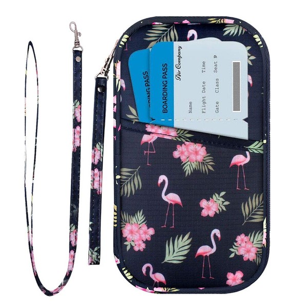 RFID Blocker Family Passport Wallet, Passport Document Organiser with Two Removable Straps for Men Women, flamingo, Classic