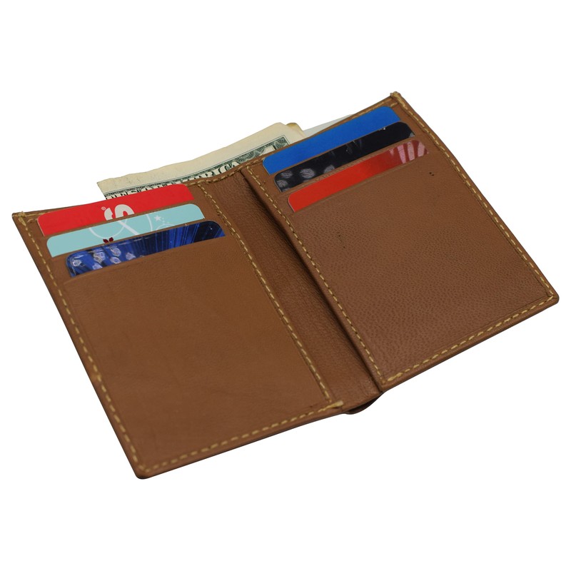 RFID Blocking Mens Slim Bifold Wallet Genuine Leather Front Pocket Multi Card Holder Tan